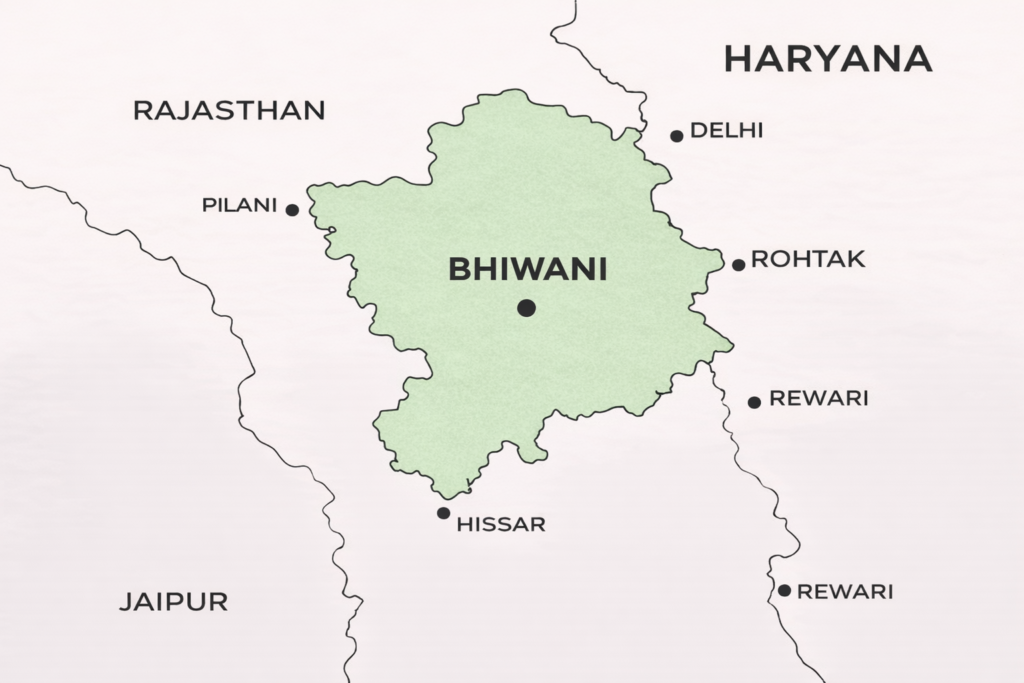 Bhiwani, located in the state of Haryana, is situated in the western part of northern India and is known for its semi-arid landscape and historical significance. The district lies close to the Rajasthan border, giving it a mix of Haryana’s plains and desert-like climatic influences. Its geographical position makes it an important link between major cities like Delhi and Hisar, contributing to trade, travel, and cultural exchange in the region.